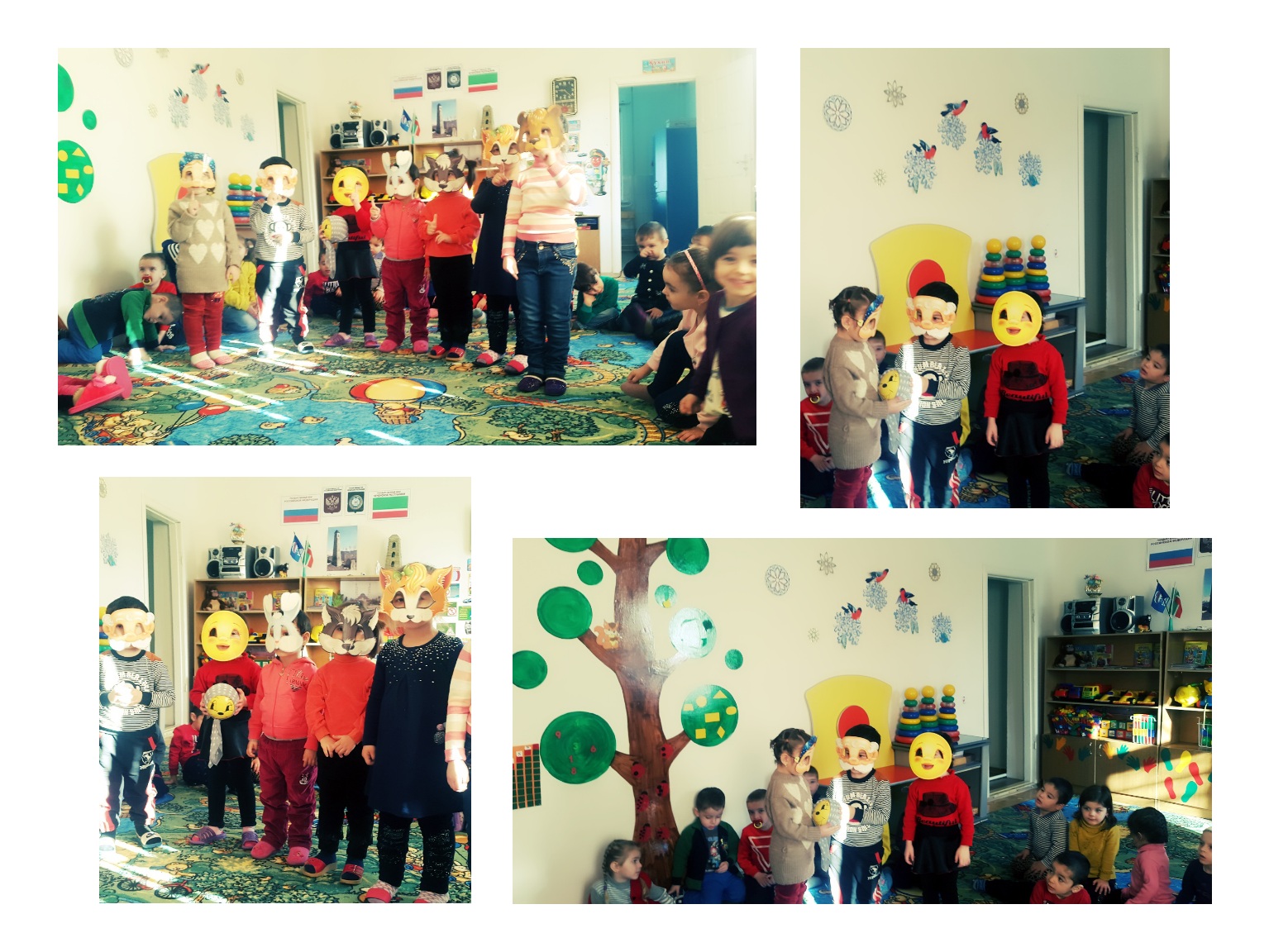 03.02.2016В младшей группе "Колобок" было проведено итоговое занятие по теме недели "Дикие животные". С целью доступного изучения и запоминания материала была проведена инсценировка сказки "Колобок". Сюжет сказки был дополнительно обогащен перечислением признаков, которыми овладеет каждое животное. Дети мимикой, жестами изображали характер животных (хитрая лиса, злой волк и т. д.)