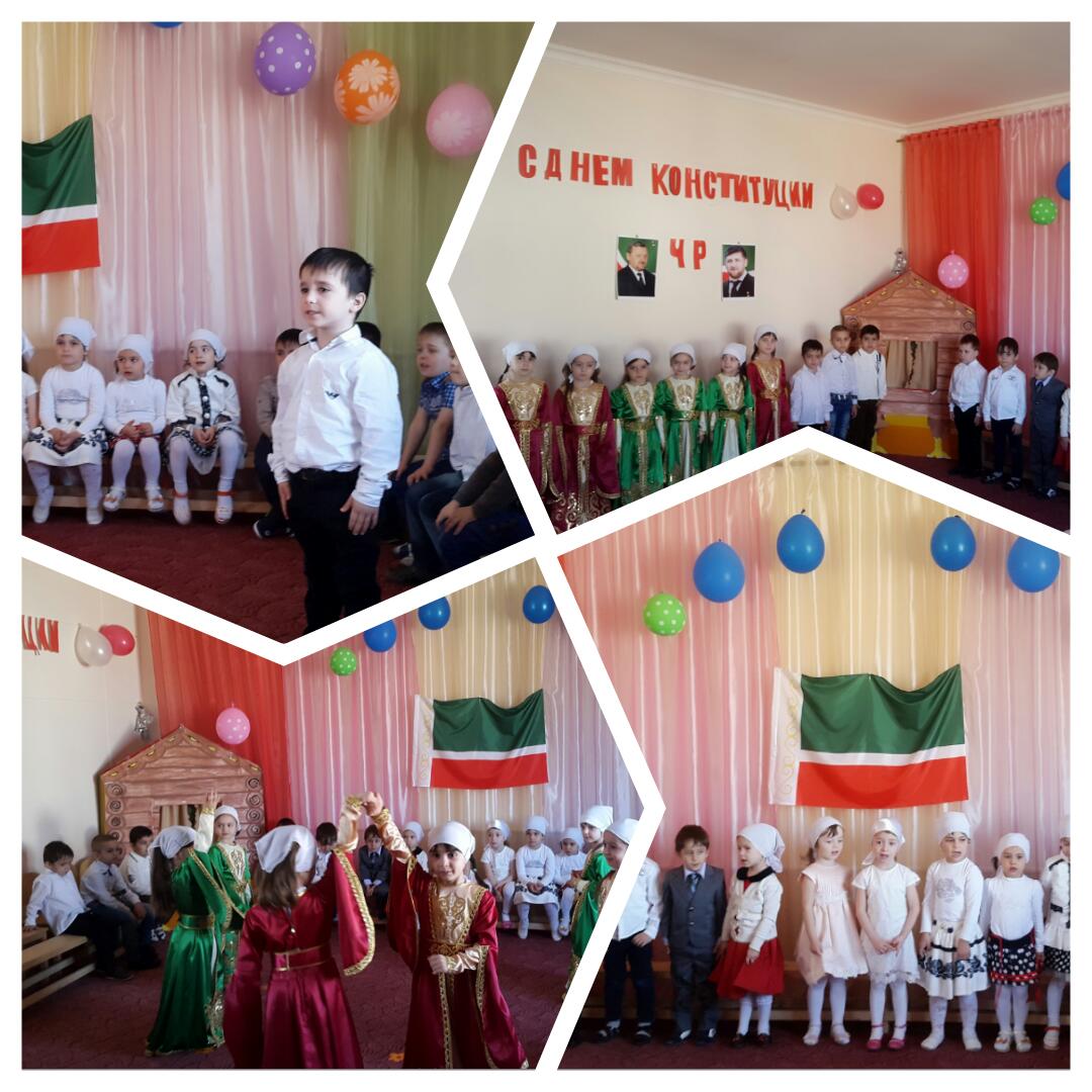 На протяжении всей недели воспитатели средней и старших групп проводили с детьми тематические беседы «День Конституции Чеченской Республики» с целью воспитания гуманной, духовно - нравственной личности, достойных будущих граждан Чеченской Республики, патриотов своего Отечества, также беседы о государственных символах Чеченской Республики. Дети в игровой форме познакомились с основным законом республики – Конституцией Чеченской Республики.