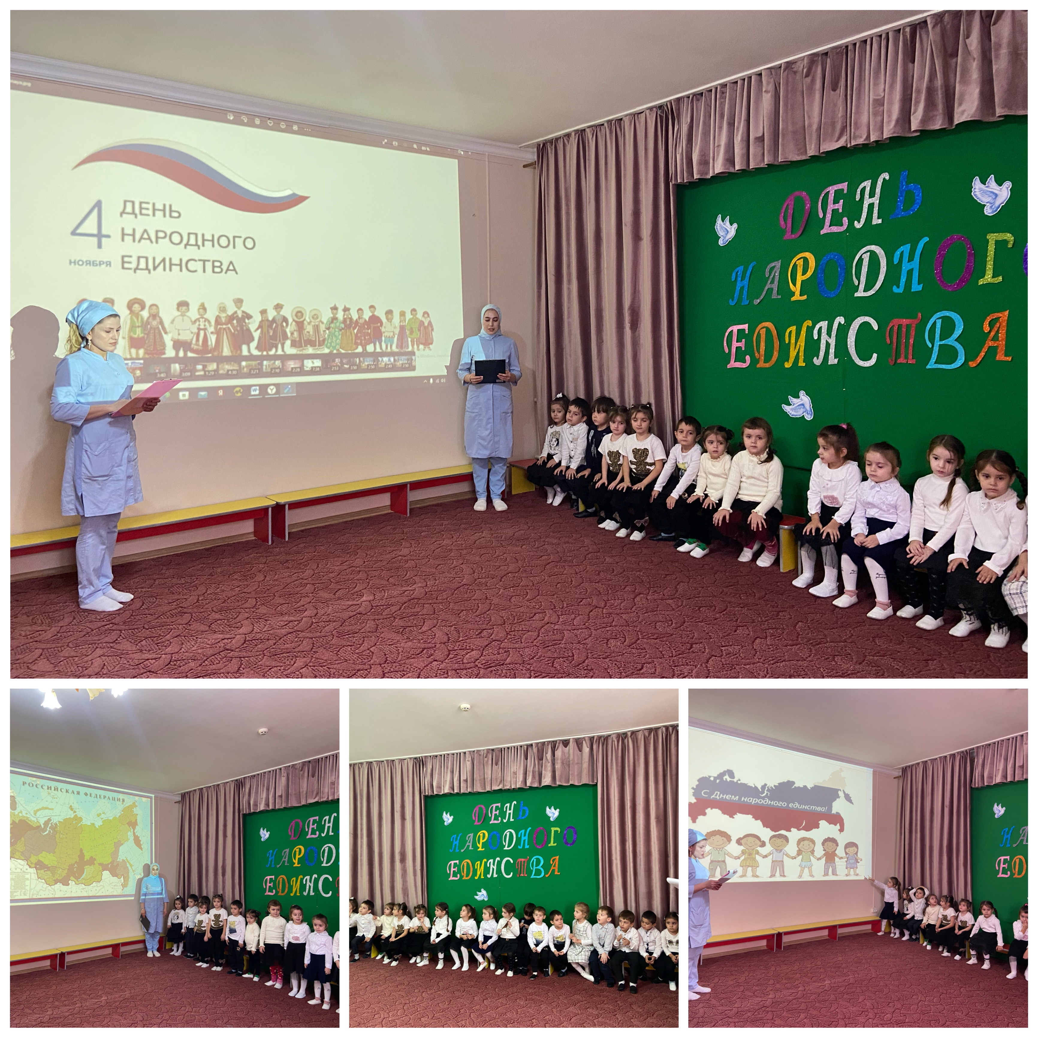 03.11.2023В «Детском саду №1 «Шовда» прошёл утренник на тему «День народного единства». Организаторы -воспитатели средней группы «Ромашки» Бачаева М.А. и Джамалуева М.Р рассказали детям о возникновении этого праздника.