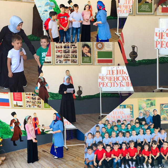 06.09.2018В целях реализации задач ДОУ по потриотическому воспитанию дошкольников проведены мероприятия,посвященные Дню Чеченской Республики.6 Сентября 2018 г. В нашем детском саду прошло праздничное мероприятие, посвященное ко Дню Чеченской Республики.Развитие познавательного интереса к истории своего народа,воспитание любви к своей малой Родине,чувства гордости за свой народ-стали основной целью мероприятия.